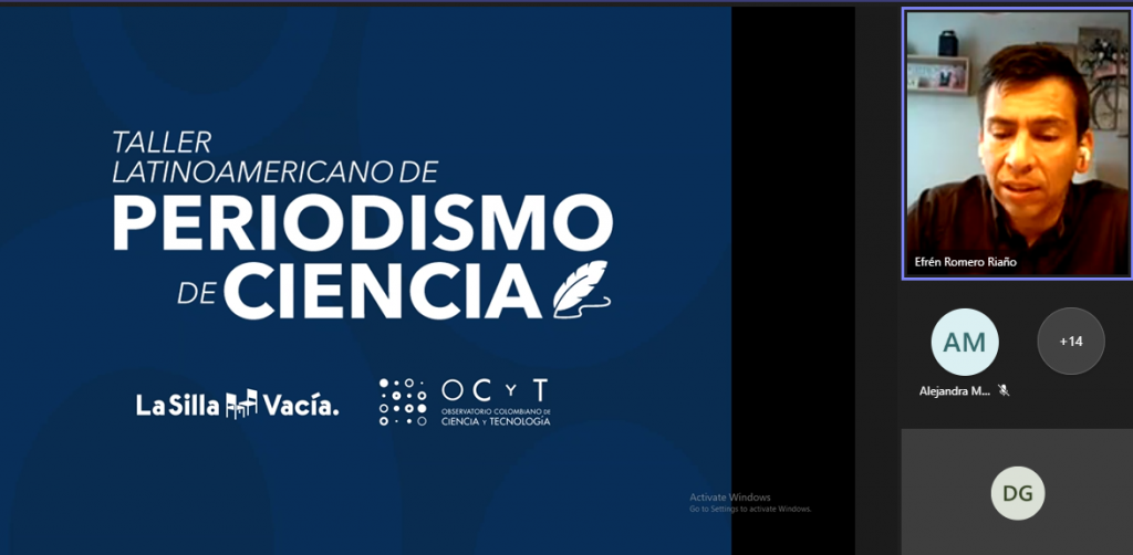 El 7 de junio de 2022, desde el Observatorio Colombiano de Ciencia y Tecnología (OCyT) llevamos a cabo el Módulo 4 del Taller Latinoamericano de Periodismo de Ciencia, un espacio de aprendizaje para que periodistas, comunicadores y profesionales que hacen ciencia a nivel nacional e internacional tengan insumos para comunicar efectivamente los métodos y los resultados de los procesos de investigación.