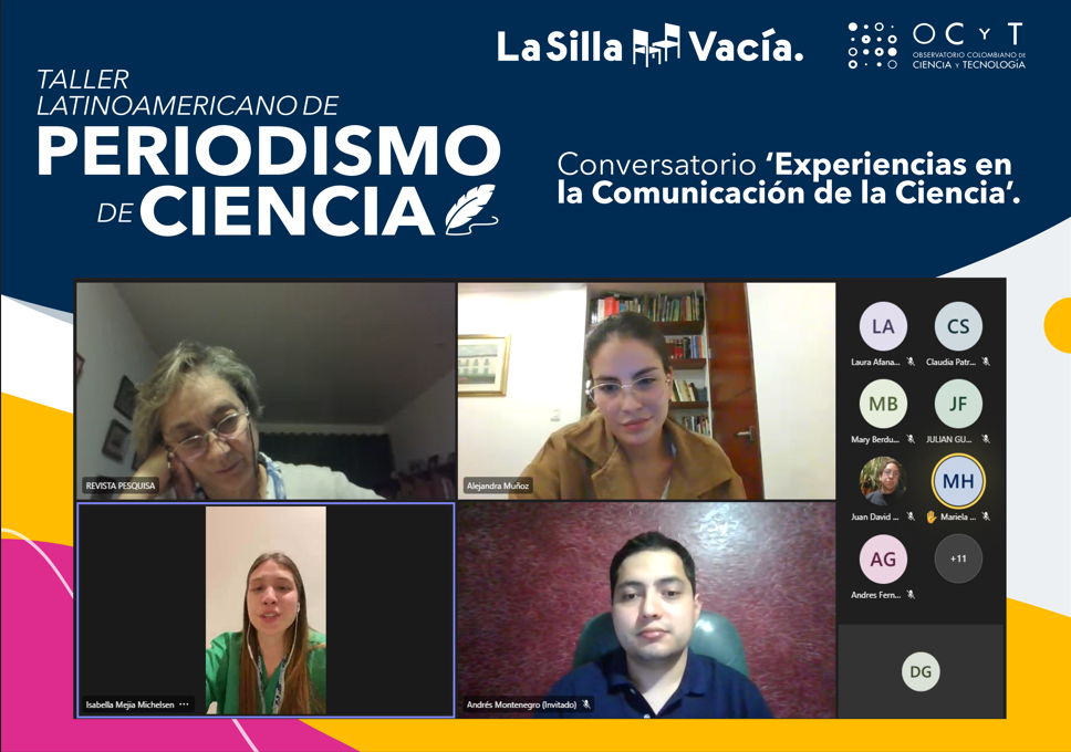 El 26 de julio de 2022, en el Observatorio Colombiano de Ciencia y Tecnología (OCyT) llevamos a cabo el último módulo de nuestro Taller Latinoamericano de Periodismo de Ciencia, el cual se realizó en alianza con La Silla Vacía para brindar herramientas y conocimientos sobre comunicación para la Ciencia, Tecnología e Innovación a profesionales y personas que hacen y difunden ciencia a nivel nacional e internacional.